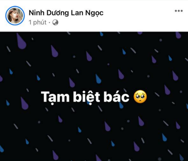 Đặc biệt, Ninh Dương Lan Ngọc cũng đăng hẳn một dòng trạng thái để từ biệt mẹ Chi Dân: "Tạm biệt bác". Là người bạn lâu năm và cũng là "bạn gái tin đồn" của Chi Dân nên chắc hẳn lúc này Ninh Dương Lan Ngọc cũng rất đau buồn trước sự ra đi của mẹ anh.