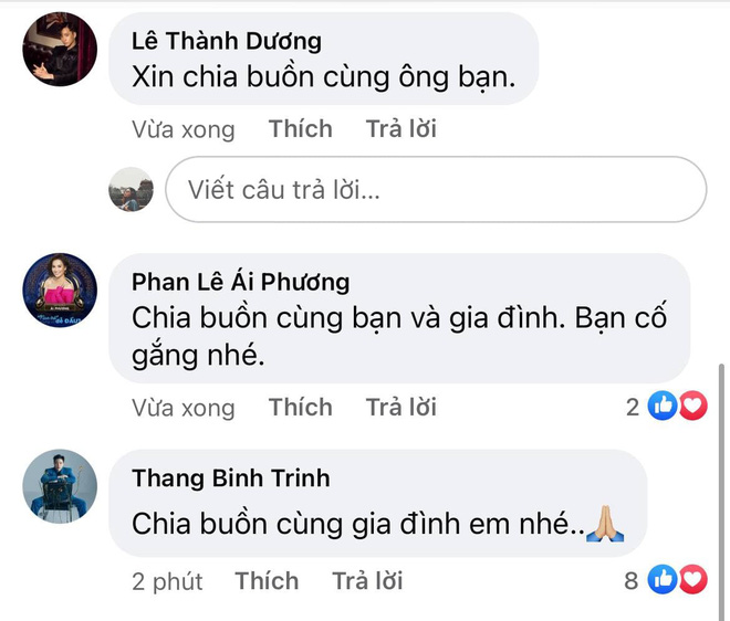 Ngay sau khi biết tin, dàn sao Việt như Ngô Kiến Huy, Phan Lê Ái Phương, Văn Mai Hương,... đã gửi động viên và chia buồn đến Chi Dân, mong anh vượt qua nỗi mất mát này.