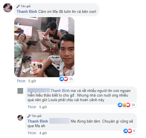 Tuy nhiên, đáng chú ý là phản hồi của mẹ Ngọc Lan với Thanh Bình, bà viết: "Mẹ và rất nhiều người tin con ngoan hiền hiếu thảo biết lo cho gia đình. Nhưng nhà con nuôi ong nhiều quá nên giờ Louis phải chịu cái hoàn cảnh này".