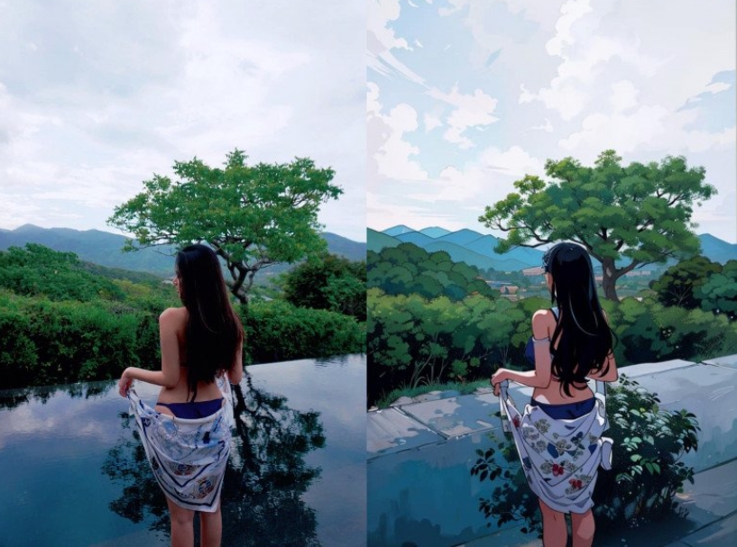 Midu chính là trường hợp tiêu biểu khi đăng tải bộ ảnh diện bikini khoe dáng bên bờ hồ. Dù đã được AI chuyển thành ảnh 2D anime nhưng cộng đồng mạng vẫn không khỏi xuýt xoa trước thân hình nóng bỏng của người đẹp.