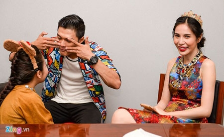 "Đối thủ thời trang" của Minh Hằng không ai khác chính là ca sĩ Thủy Tiên. Lần này, bà xã Công Vinh nổi bật với bộ đầm họa tiết rực rỡ, kết hợp phụ kiện vương miện. |
