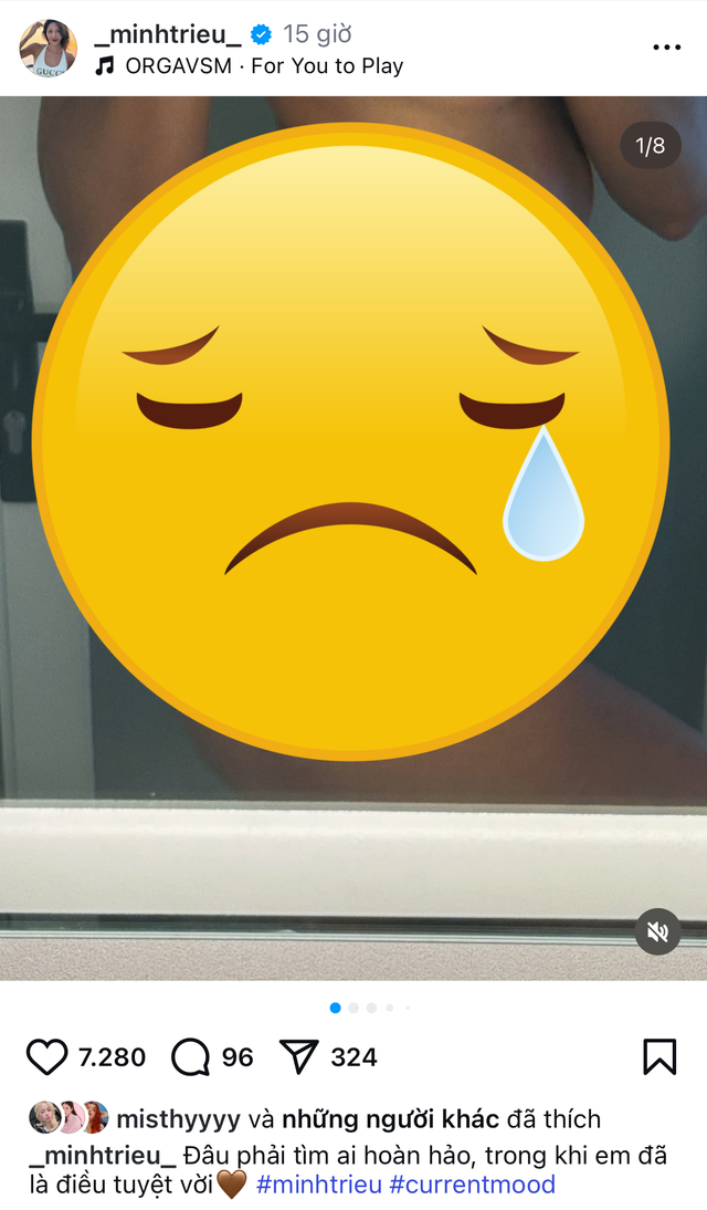 Theo đó, trên trang cá nhân có gần 250 nghìn người theo dõi, nữ siêu mẫu đã đăng tải bức ảnh không diện quần áo, góc chụp che những điểm nhạy cảm nhưng vẫn để lộ rõ thân hình từ chân ngực đến đùi. Bức ảnh này nhanh chóng trở thành tâm điểm bàn tán, nhiều người nhận xét nó đã vượt quá ngưỡng của gợi cảm trở thành phản cảm, khó chấp nhận. Khi được netizen góp ý, Minh Triệu không xoá hay ẩn đi và thẳng thắn đáp lại: "Chị thấy bình thường à, thôi em xem ảnh khác đi".