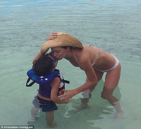 Mặc dù bị dính tin đồn tình ái với nhiều người, nhưng có vẻ như Flynn là "người đàn ông" duy nhất được Miranda Kerr quan tâm hiện giờ. Mặc bộ bikini nhỏ nhắn, cựu thiên thần Victoria's Secret còn khiến nhiều người ngưỡng mộ vóc dáng hoàn hảo của mình.
