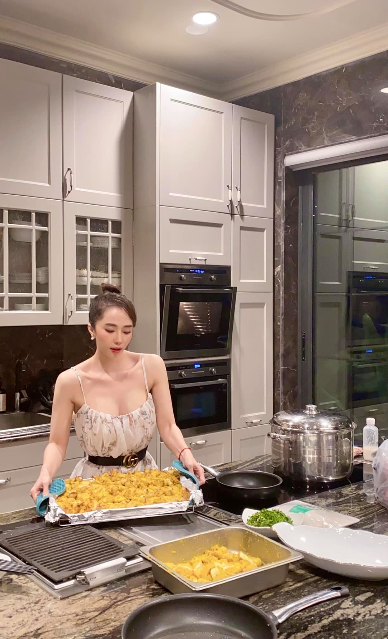 Có vẻ như cô nàng đang bận bịu nấu nướng vẫn không quên "thả thính" trên mạng xã hội.