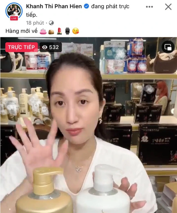 Khánh Thi mới đây đã lên sóng livestream bán hàng với những món mỹ phẩm quen thuộc, từ son môi, kem trắng da, kem dưỡng... Cô liên tục "chốt đơn" với số lượng người xem trung bình từ vài trăm tới một nghìn.