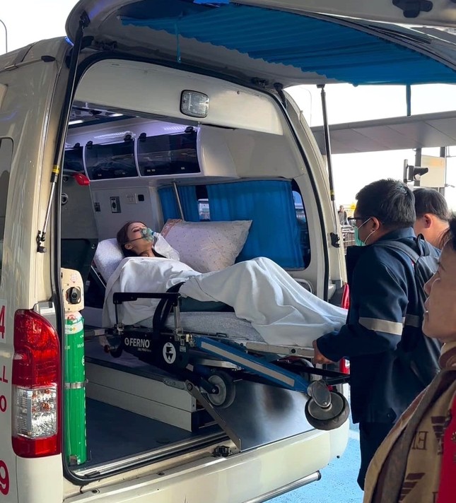 Trong hình ảnh lan truyền trên mạng xã hội, Thitaree Phongtharasathorn thở bình oxy, được đưa lên cáng để đi cấp cứu . Nhiều fan sắc đẹp lo lắng, mong cô sớm bình phục.