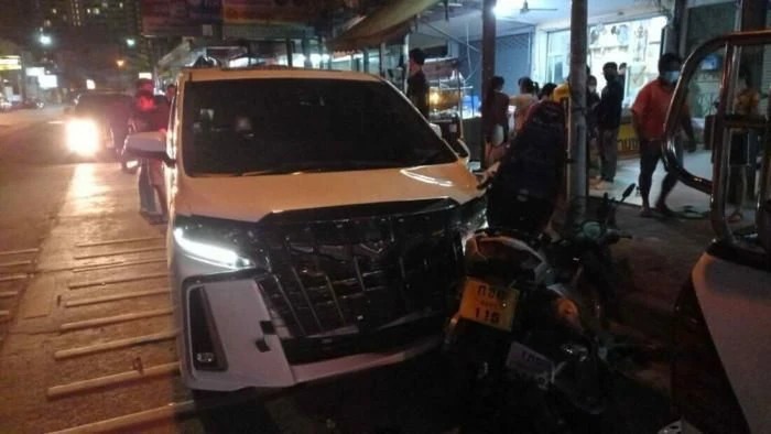 Đêm qua, tôi đến Pattaya với mẹ và em trai. Trên đường trở về từ bữa tiệc sinh nhật của dì, đột nhiên có sự cố mất điện, khi nhận ra thì tôi đã đâm vào ô tô đậu bên đường và va vào các xe đậu trước cửa quán cháo. Tôi đã lập tức xuống xe để xem xét tình hình, may mắn không có ai bị thương.
