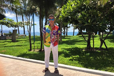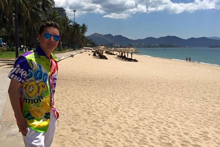 Sau ồn ào với Quang Lê, Đàm Vĩnh Hưng vui vẻ tận hưởng giây phút thư giãn ở biển Nha Trang. Mr Đàm xuất hiện với thời trang lòe loẹt.