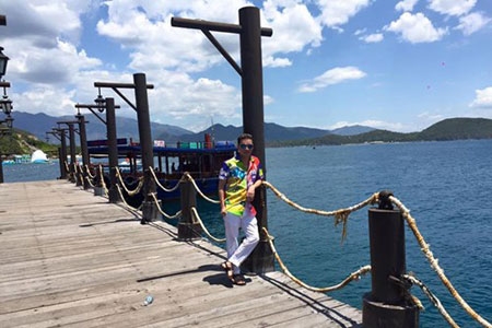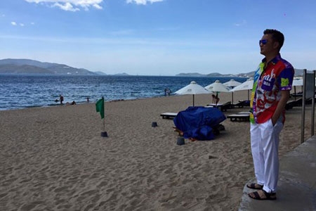 Huấn luyện viên Giọng hát Việt 2015 đang có tâm trạng khá thoải mái trong chuyến đi tới Nha Trang. |