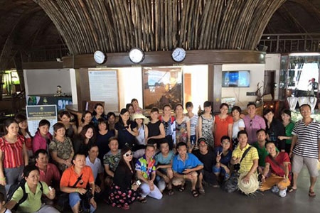 Anh vui vẻ chụp ảnh với mọi người tại đây. |