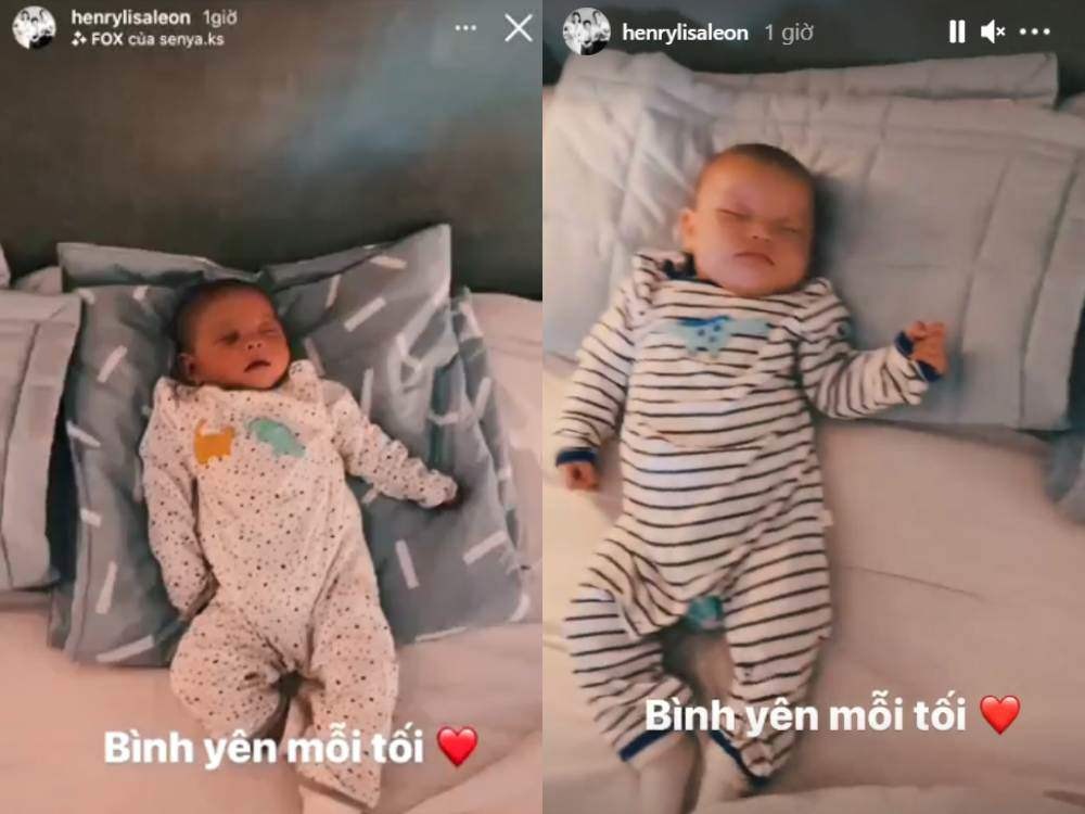 Cảnh tượng bình yên vào buổi tối của gia đình Hồ Ngọc Hà khi 2 con đã ngủ. Nữ ca sĩ từng tiết lộ kể từ khi có con, giờ giấc sinh hoạt của mình bị đảo lộn: "Cảm ơn các con yêu dấu đã giúp mẹ đi ngủ lúc 9h30 tối và dậy lúc 6h sáng. Đi hát trở lại chắc ngủ luôn trên sân khấu".