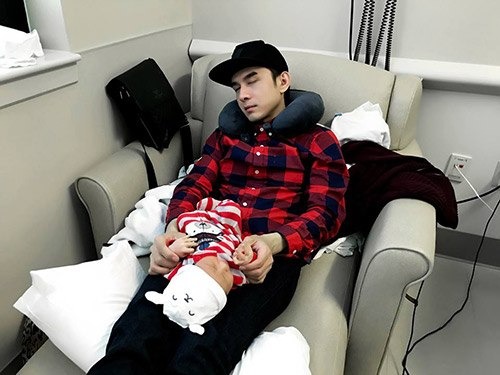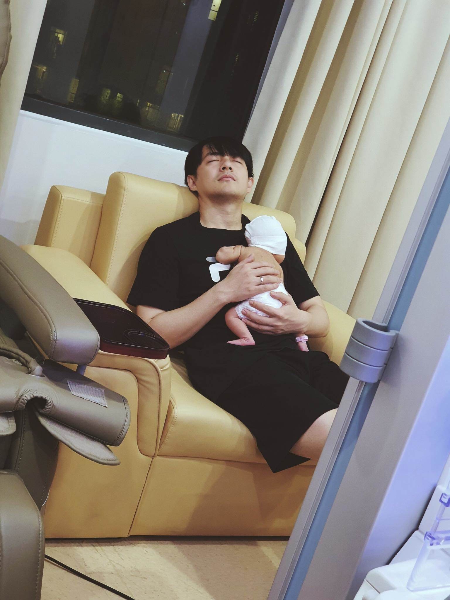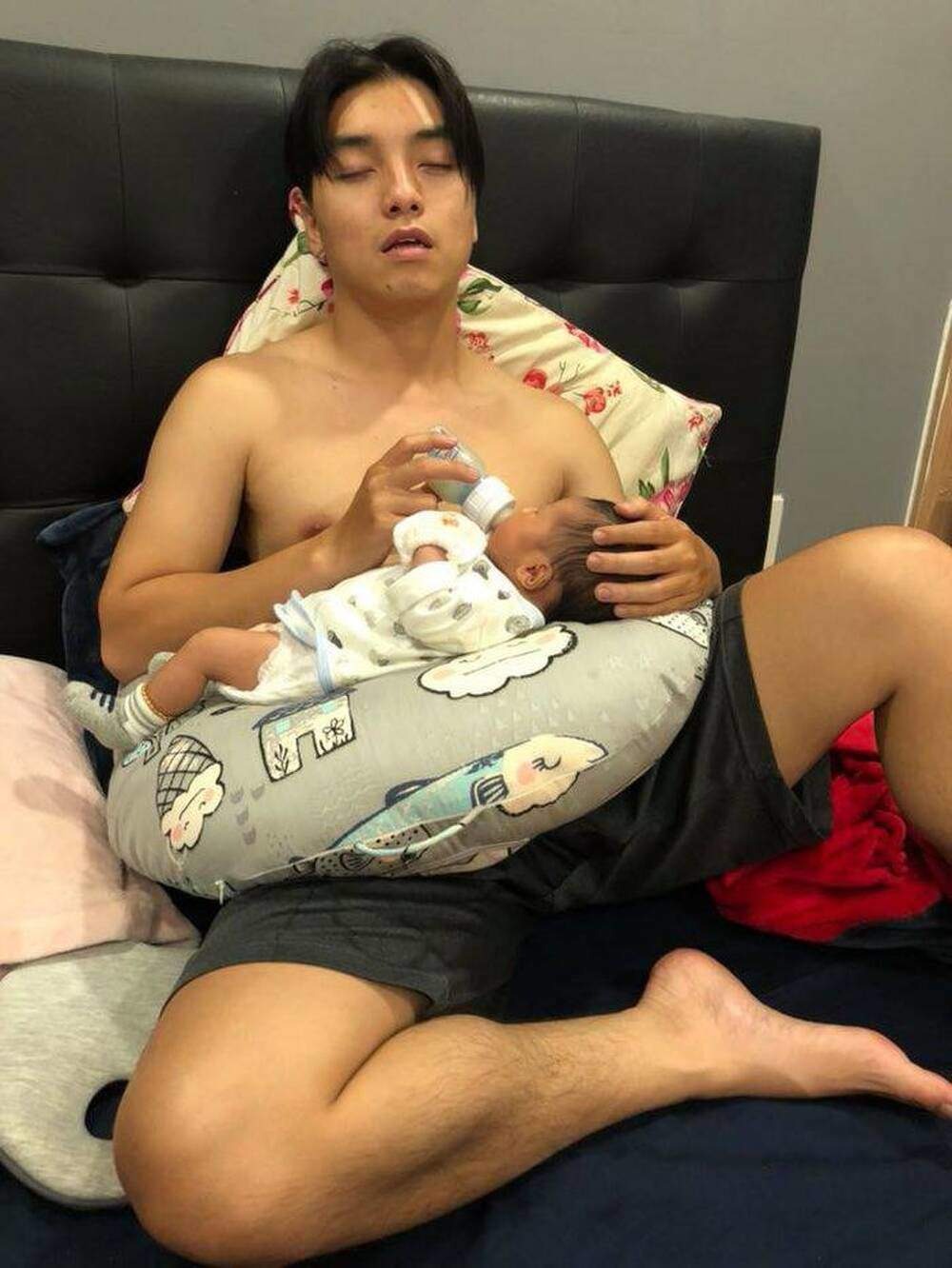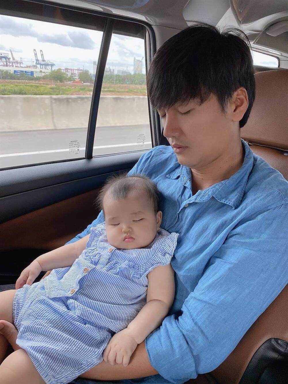 Có lẽ vì phải chăm con đôi nên Dương Khắc Linh gặp không ít những áp lực, đến mức ngủ quên với tư thế "khó đỡ" và bị Sara Lưu chụp lại.