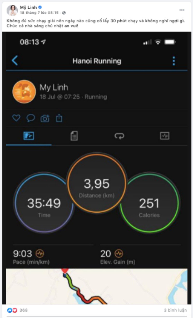 Mỹ Linh chia sẻ cô bắt đầu tập thể dục từ năm 18 tuổi với ca sĩ Thanh Lam. Thời trẻ, cô thường tập thể dục nhịp điệu và chạy xe đạp. Hiện tại ở độ tuổi tứ tuần, người đẹp vẫn duy trì thói quen vận động là chạy bộ từ 5-7km vào mỗi buổi sáng. Ngoài ra, diva còn tập yoga để rèn luyện sức bền và sự dẻo dai.