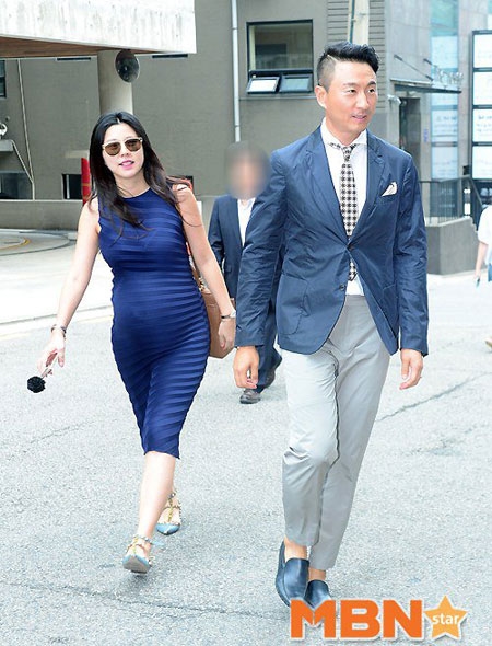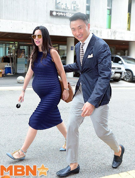 Đôi vợ chồng nổi tiếng hạnh phúc sánh vai. Em bé sắp chào đời là con thứ hai của vợ chồng Yoon Mi, con đầu của cô đã gần 5 tuổi. |