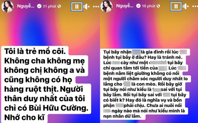 Nam Em mới đây đã có dòng trạng thái khá gay gắt trên trang cá nhân. Cô khẳng định bạn trai Bùi Hữu Cường là người thân duy nhất của mình lúc này, bỏ qua luôn cha mẹ ruột và chị gái song sinh Nam Anh.