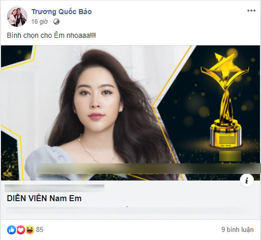 Cách đây ít giờ, VJ Quốc Bảo gây bất ngờ khi đích thân kêu gọi bình chọn giải thưởng cuối năm cho Nam Em trên trang cá nhân của mình. Đây là lần đầu tiên nam VJ điển trai công khai nhắc đến bạn gái và nhận được phản ứng vô cùng tích cực của bạn bè cũng như người hâm mộ. Mọi người cho rằng giờ đây có lẽ Quốc Bảo đã thoải mái hơn khi nhắc đến Nam Em sau thời gian dài im hơi lặng tiếng.