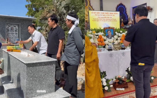 Sau lễ cúng tam thất, MC Quyền Linh cùng nhạc sĩ Tô Hiếu và gia đình tiếp tục đến viếng phần mộ của cố nghệ sĩ. Không có phát ngôn ồn ào hay hành động phô trương, chỉ là những khoảnh khắc lặng lẽ thắp nén nhang, cúi đầu tưởng niệm trước mộ phần người đồng nghiệp từng một thời lừng lẫy. Chính sự giản dị ấy lại khiến nhiều khán giả xúc động và dành nhiều sự quan tâm.
