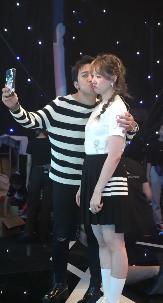 Cũng trong buổi quay gameshow đó, mới đây diễn viên Nam Thư đã chia sẻ thêm những hình ảnh hậu trường vui vẻ cùng vợ chồng Trấn Thành - Hari Won. Trong ảnh, Hari Won mặt phụng phịu vì mệt mỏi, Trấn Thành thấy thế liền bóp chân, chăm sóc bà xã chu đáo.