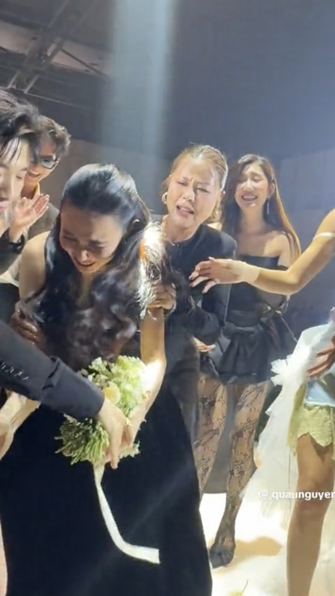 Theo đó, khi Minh Tú quăng bó hoa cưới để "nhả vía" lấy chồng cho người tiếp theo thì rất nhiều mỹ nhân Vbiz đã xếp hàng để bắt. Vì được người hỗ trợ nên Hoa hậu Thuỳ Tiên là người chụp được hoa, sau đó Nam Thư đã nhanh chóng tiến lại gần và dùng tay đẩy mạnh vai của đàn em. Trước hành động bất thình lình của Nam Thư, Hoa hậu Thuỳ Tiên lộ rõ biểu cảm hốt hoảng.