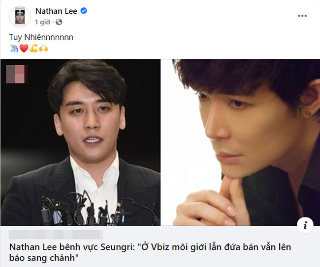Mới đây, Nathan Lee đã chia sẻ lại trên fanpage phát ngôn từ năm 2019 của mình về scandal nam ca sĩ Seungri (cựu thành viên BIGBANG) bị điều tra môi giới mại dâm.