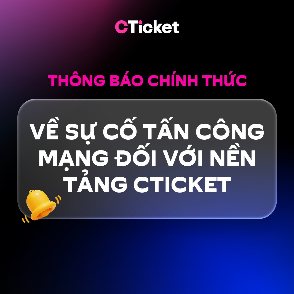 "THÔNG BÁO CHÍNH THỨC VỀ SỰ CỐ TẤN CÔNG MẠNG ĐỐI VỚI NỀN TẢNG CTICKET]