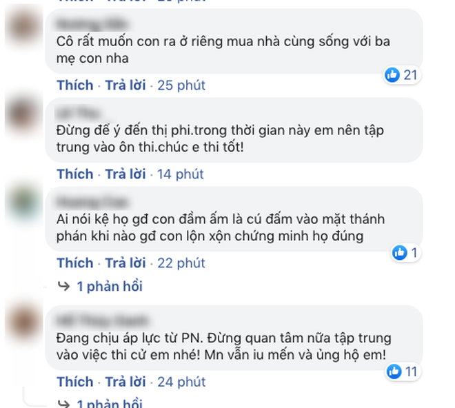 - Đừng để ý đến thị phi, trong thời gian này em nên tập trung vào ôn thi. Chúc em thi tốt!