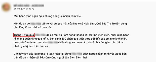 Đến đây, netizen tiếp tục thắc mắc về chuyện suốt 6 tháng qua vì dịch bệnh nên NS Hoài Linh không thể đến miền Trung trao tiền quyên góp, nhưng trong thời gian đó vẫn đồng hành cùng nhãn hàng đi từ thiện tại Điện Biên?