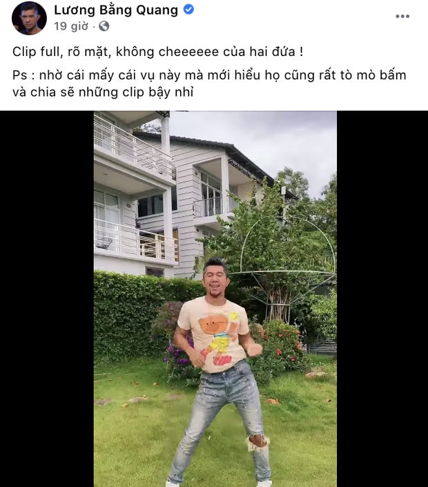 Sau đó vài tiếng, Lương Bằng Quang cũng lên tiếng trên trang cá nhân nhưng anh lại mỉa mai với giọng điệu sâu cay: "Clip full, rõ mặt, không che của hai đứa. Nhờ mấy vụ này mới biết học cũng rất tò mò bấm và chia sẻ những clip bậy nhỉ?".