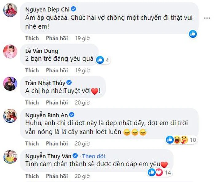 Ở dưới phần bình luận, cư dân mạng đồng loạt gửi những lời chúc tới vợ chồng nam nghệ sĩ: "Ôi, nhìn mà mừng cho gia đình em quá! Chúc hai vợ chồng chuyến đi vui vẻ!", "Nắm tay thật chặt đi qua bão giông", "Cảm phục người vợ như chị luôn, chúc chú sức khoẻ và những điều tốt đẹp sau chuyến đi này nhé", "Nắm tay nhau đi khắp Nhật Bản là có thật"...
