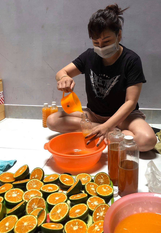 Trong lúc show bị dừng lại, Lê Giang muốn kiếm việc để làm, vừa có thêm thu nhập lại vừa tốt cho sức khỏe. Chị kể, lúc đầu chị đặt cam về làm nước cam cho con uống để tăng cường sức khỏe. Lê Lộc uống xong khen mẹ làm ngon. Vậy là chị làm để bán online luôn.