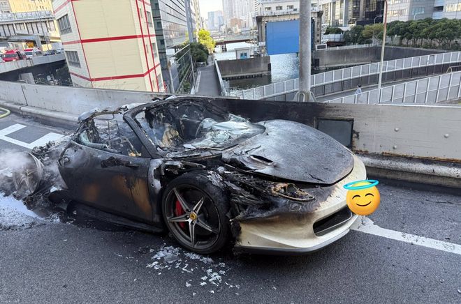 Hóa ra mới đây, Honkon vừa mua một chiếc siêu xe có giá lên tới hơn 43 triệu JPY (7 tỷ đồng). Nam nghệ sĩ cho "xế cưng" lăn bánh ngay lập tức, rời khỏi cửa hàng xe trong niềm vui hân hoan. Ai ngờ, khi đang đi trên cao tốc, Honkon bỗng nhiên thấy có gì đó sai sai từ chiếc siêu xe. Khi xuống kiểm tra, anh phát hiện phần động cơ bắt lửa và nhanh chóng lan ra cả chiếc xe. Sau khi nỗ lực dập lửa nhưng không thành công, nam nghệ sĩ chỉ đành gọi cứu hỏa rồi bất lực nhìn "xế yêu" cháy rụi chỉ trong vòng 20 phút ngắn ngủi.