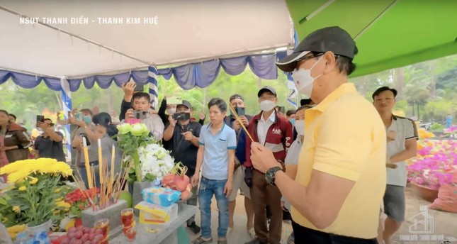 NSƯT Thanh Điền cho biết gia đình bỏ ra chi phí trùng tu mộ THanh Kim Huệ vào Tiết Thanh minh. Hiện tại, nam nghệ sĩ tạm thời chỉnh sửa phần mộ vợ để đảm bảo mỹ quan, thay những chậu hoa bị vỡ do đám đông chen lấn gây ra.