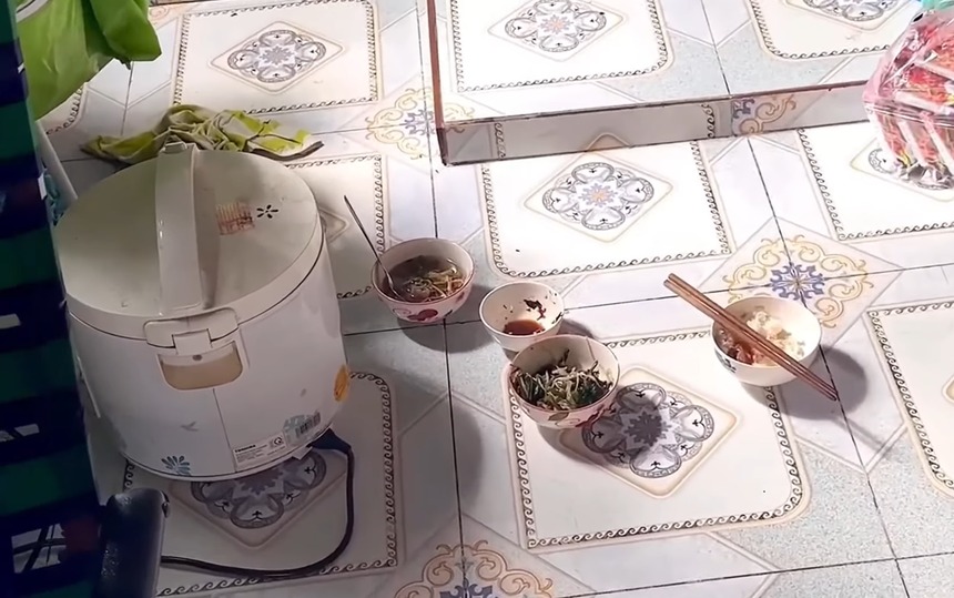 Nhìn bữa cơm chỉ có rau chấm nước tương của nghệ sĩ Tuấn Anh, ai cũng xót xa. Các nghệ sĩ đều động viên Tuấn Anh cố gắng ăn để lấy sức còn uống thuốc.