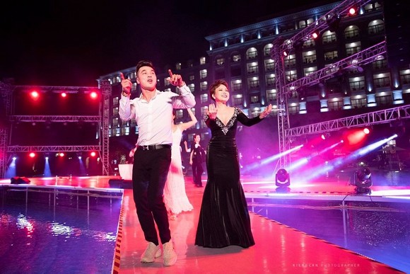 Nhưng các cô chú khách mời của ba má chú rể cô dâu thì yêu quý khoái bộ đồ chụp hình quá trời. Thôi thì có này có kia, nhưng khúc xuống sàn quẩy em không đem theo đồ nên chơi luôn mọi người thông cảm nhảy đầm đồ dạ tiệc. Mọi người thông cảm".