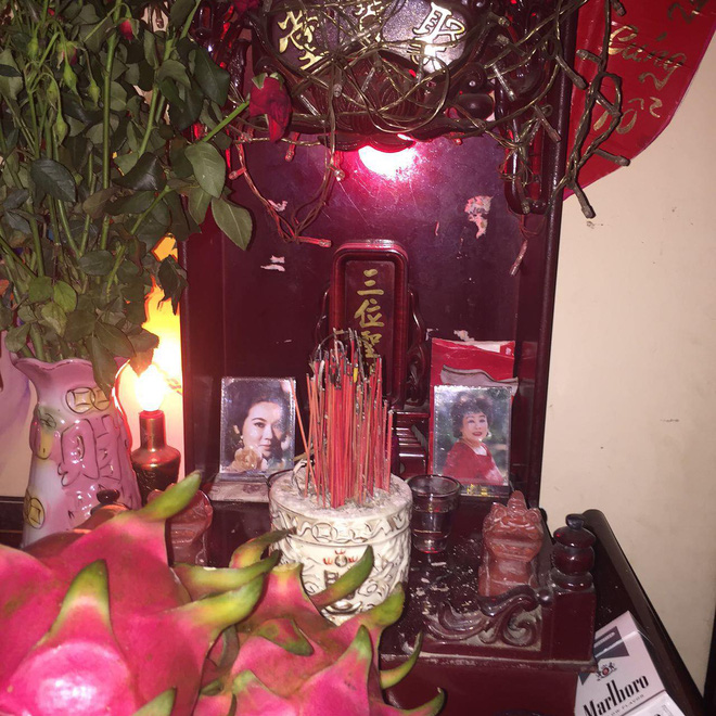 Bàn thờ Tam vị Thánh tổ và hai bậc tiền bối trong nghề: cố nghệ sĩ Thanh Nga và cố nghệ sĩ Kim Ngọc trong nhà ca sĩ Hàn Thái Tú.
