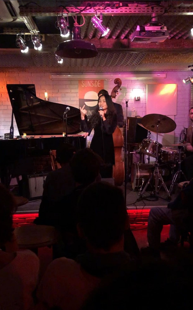 Không có bàn thờ tổ nên Lan chỉ có cách giữ tấm lòng dù mới bị dính mưa ốm tối qua nhưng vẫn quyết gượng đi bộ mua một bó hoa xanh thắm để nhớ Tổ Nghiệp và bằng được tới một bar jazz để lên jam cùng các nghệ sĩ jazz chuyên nghiệp.