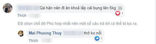 Mai Phương Thúy đang buồn bã là vậy nhưng cư dân mạng còn hùa vào trêu chọc, người thì bảo cô thi Thách thức danh hài, người lại nói cô là Master Chef khiến người đẹp dở khóc dở cười. Cuối cùng, Mai Phương Thúy cho biết vì quá buồn nên cô phải đi ăn uống để khỏa lấp tâm hồn.