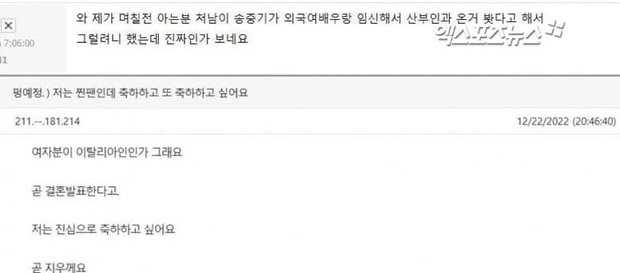 Ngay sau đó, một cư dân mạng đã để lại bình luận cho biết bắt gặp Song Joong Ki và bạn gái tại một phòng khám thai. Cư dân mạng cũng cho hay, hiện tại Song Joong Ki đang gấp rút chuẩn bị lễ cưới và đây cũng là lý do anh nhanh chóng xác nhận mối quan hệ này.