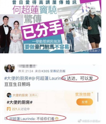 Một cư dân mạng đã hỏi Hà Siêu Liên rằng có thể gửi ảnh sinh nhật của Đậu Kiêu không, Hà Siêu Liên trả lời: "Tôi sẽ không cho các bạn xem đâu", được xem là đáp trả tin đồn chia tay.