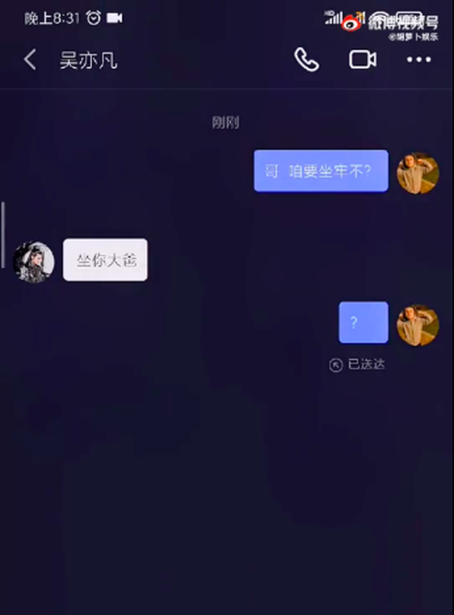 Trong 1 diễn biến khác, 1 netizen chia sẻ việc nhắn tin với tài khoản Douyin của Ngô Diệc Phàm. Người này hỏi: "Anh ơi, chúng ta sắp đi tù sao?". Không thể ngờ được rằng, nam ca sĩ tỏ ra cáu giận, nổi điên lên khi đáp trả bằng 1 câu chửi bậy: "Ngồi *** ** ***". Netizen này đã cẩn thận quay màn hình để xác nhận rõ tin nhắn chửi bậy được gửi từ chính tài khoản Douyin thuộc về Ngô Diệc Phàm. Tin tức này hiện khiến công chúng sốc nặng, không thể ngờ rằng nam thần ngày nào lại lộ bản tính ăn nói thô tục, máu chiến đến vậy.