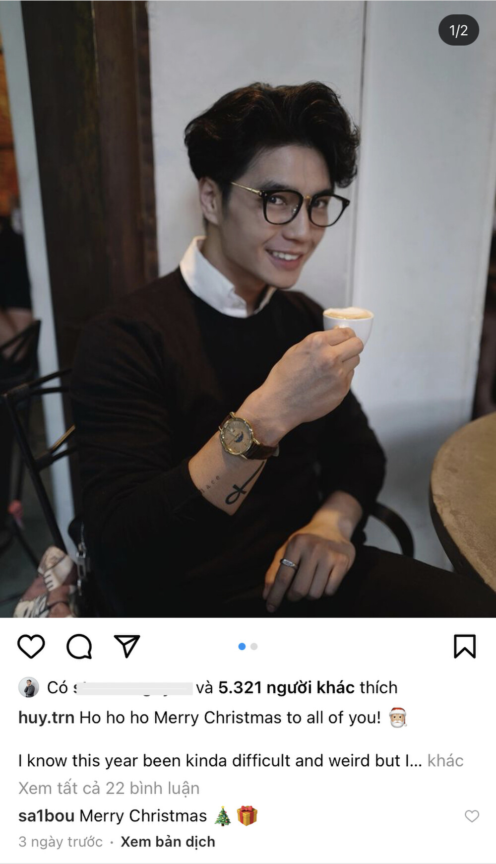 Ở một diễn biến khác, Huy Trần đã đăng tải 1 bài viết cuối cùng vào khoảng 3 ngày trước. Anh đã đăng tải hình ảnh của bản thân đang cầm ly cà phê kèm dòng trạng thái chúc mừng Giáng sinh.