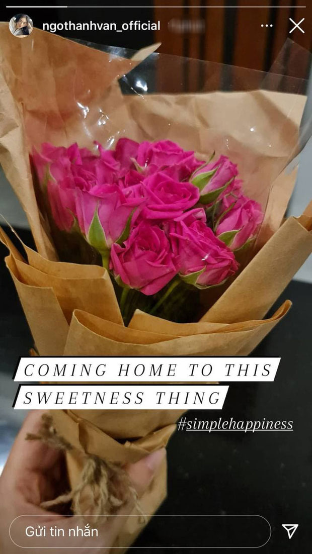 Khuya ngày 28/12, người đẹp sinh năm 1979 đã có động thái đầu tiên trên trang cá nhân. Theo đó, cô chia sẻ trên story bức ảnh chụp bó hoa hồng xinh xắn kèm dòng trạng thái: "Coming home to this sweetness thing #simplehappiness" (Tạm dịch: Về nhà cùng điều ngọt ngào #niềmvuiđơngiản). Dường như những ồn ào về chuyện tình cảm không làm ảnh hưởng nhiều đến tâm trạng của Ngô Thanh Vân. Bên cạnh đó, nhiều người cũng suy đoán rằng rất có thể đây là món quà mà nữ diễn viên nhận được từ bạn trai tin đồn.