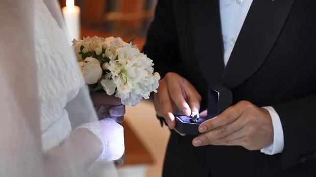 Huy Trần và Ngô Thanh Vân cùng trao nhẫn cho nhau trước sự chứng kiến của gia đình dù không chung dòng máu nhưng luôn bảo bọc cô.