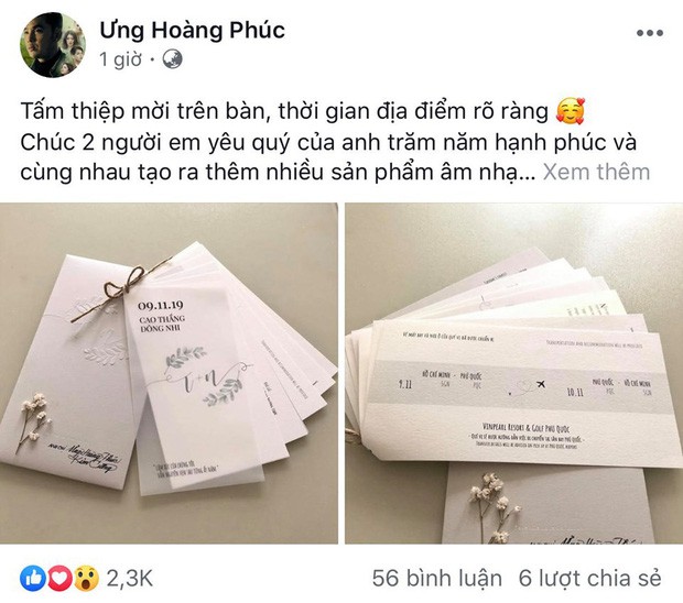 Vợ chồng Lý Hải - Minh Hà cũng là một trong những người đầu tiên khoe thiệp mời của Đông Nhi - Ông Cao Thắng. Cặp đôi xác nhận sẽ tham dự hôn lễ ở Phú Quốc của đàn em và còn tuyên bố sẽ gác lại toàn bộ công việc dù đó là thời điểm bộ phim của anh sản xuất bắt đầu bước vào giai đoạn thực hiện.