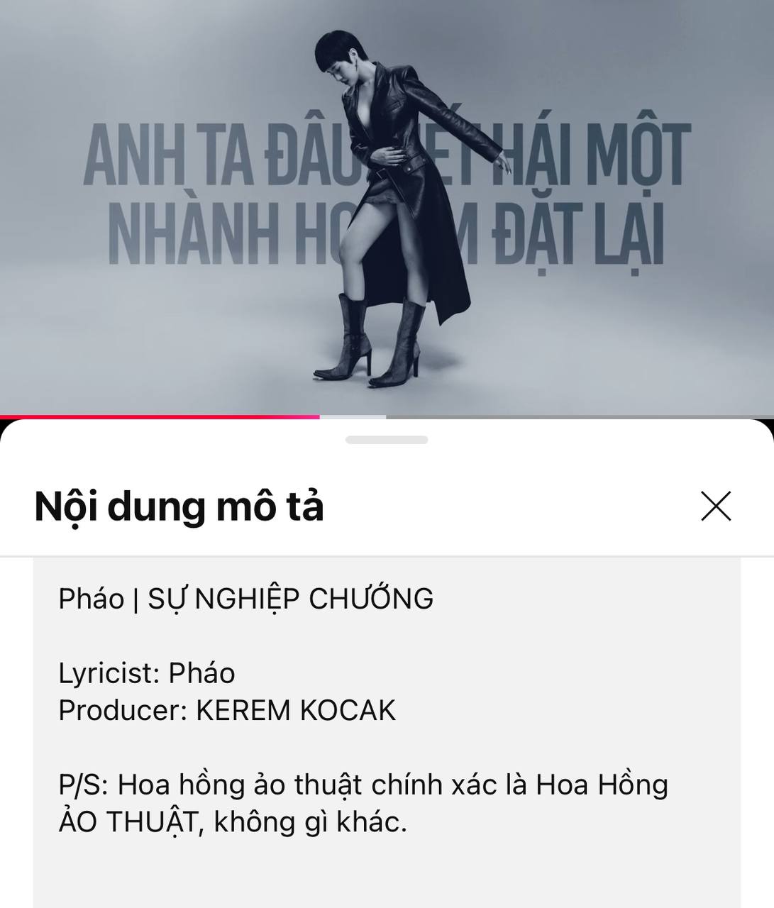 Sự Nghiệp Chướng ngay lập tức trở thành hiện tượng vì loạt chi tiết như ám chỉ đến ViruSs. Đầu tiên là chi tiết bông hồng trong câu rap "Một nhành hồng em để lại từ biệt; Những món quà từ người khác xin lỗi em từ khước". Bên dưới phần mô tả MV, Pháo còn để lại tái bút "Hoa hồng ảo thuật chính xác là Hoa hồng ảo thuật, không gì khác". Trong livestream của Ngọc Kem, cô từng chất vấn ViruSs về việc "bông hồng ảo thuật" để quên ở nhà anh. Chi tiết này như ngầm xác nhận chủ nhân bông hồng ấy không ai khác chính là Pháo.