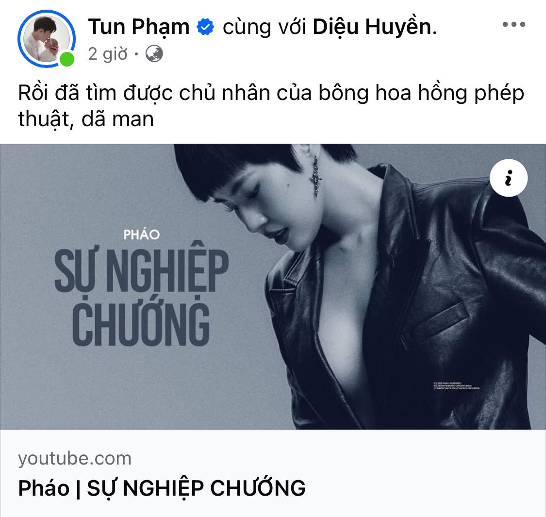 Và như để xác nhận cho suy đoán của cư dân mạng, Ngọc Kem đã nhanh chóng chia sẻ bài rap mới của Pháo, đính kèm câu cảm thán "Sự nghiệp chướng thì phải ấy rồi em". Tun Phạm cũng góp vui với bài đăng "Rồi đã tìm được chủ nhân của bông hoa hồng phép thuật, dã man".