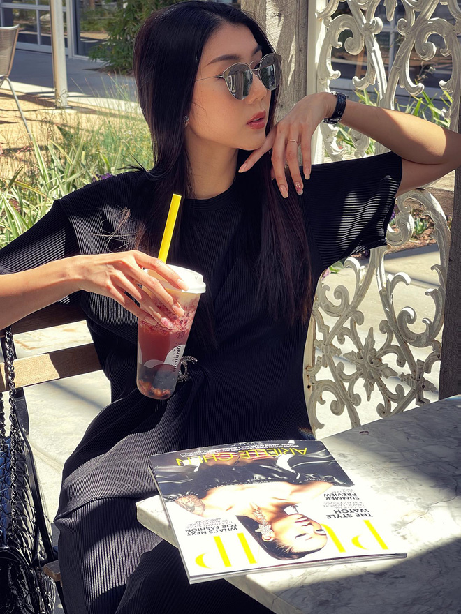 Khi ra ngoài, nữ siêu mẫu cũng sửa soạn nhanh trong 10 phút, giày cao gót thay bằng giày dép bệt.