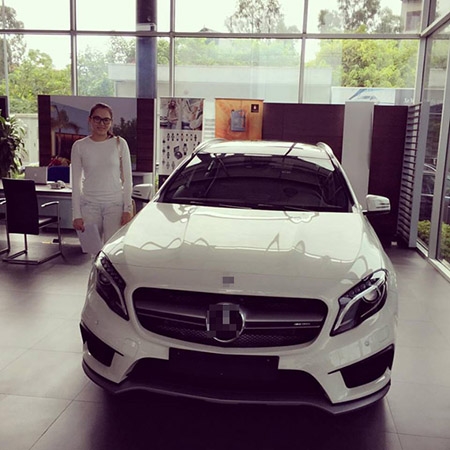 Siêu mẫu khoe trên trang cá nhân về xế hộp mới tậu, có giá khoảng 2,2 tỷ đồng.