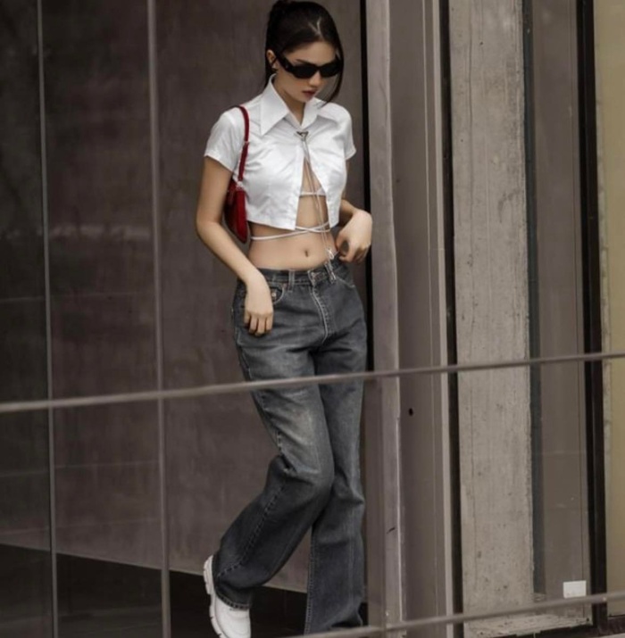 Ngoài dòng chia sẻ, dân tình không khỏi "u mê" với bộ ảnh lần này của người đẹp. Không quá hở bạo, cô chọn chiếc quần áo mix với chiếc áo sơ mi màu trắng cắt xẻ khéo léo để lộ vòng eo "con kiến". Mỗi lần xuất hiện trước công chúng, vòng eo 56 lại để visual "đỉnh của chóp" trong lòng người hâm mộ.