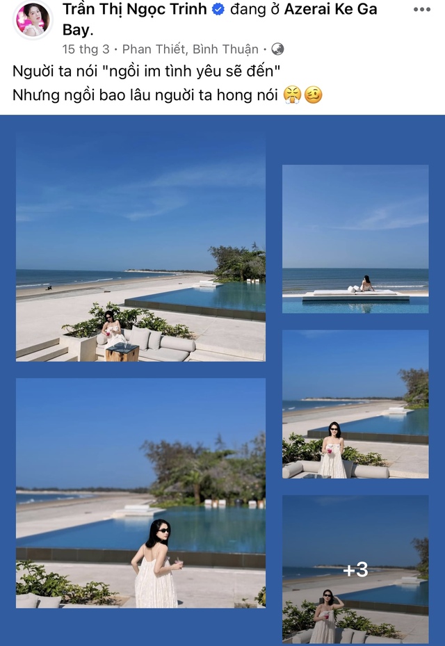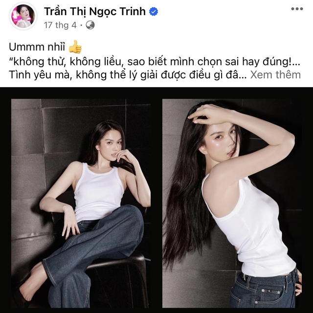 Thời gian gần đây, chân dài gốc Trà Vinh thường xuyên có những bài viết tâm trạng, nói về chuyện tình cảm: "Tôi sống theo 3 nguyên tắc đơn giản: Tình yêu cần hành động. Niềm tin cần chứng minh. Xin lỗi cần sự thay đổi", "Không thử, không liều, sao biết mình chọn sai hay đúng... Tình yêu mà, không thể lý giải được điều gì đâu. Cứ giữ an toàn, rồi biết đâu lại buông tay với tình yêu thực sự của mình", "Một là không yêu. Hai là yêu cho thật đàng hoàng và tử tế. Bởi chúng ta chẳng còn trẻ nữa, lấy thời gian đâu mà yêu hết người này đến người kia", "Cho dù một cô gái có cư xử trưởng thành đến thế nào, cô ấy sẽ luôn cố gắng tìm một chàng trai có thể chịu đựng được đứa trẻ nhỏ trong cô ấy"... Cư dân mạng liền xôn xao đặt ra nghi vấn Ngọc Trinh đang trong mối quan hệ yêu đương.